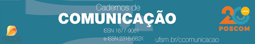 Os autores de textos aprovados pelos pareceristas de Cadernos de Comunicação cedem automaticamente e sem qualquer tipo de ônus o direito à primeira publicação do material submetido.