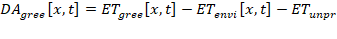 where: cGreen, = Green water consumption (m³ / ha); β = 10 (mm rainfall conversion factor for m³.ha-1); dpc = duration of the growth period in days (d); EVTgreen = Daily water green evapotranspiration (mm / day);