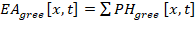 Where: WFgreen = Green Water Footprint (m³ / t); cgreen, = Green Water consumption (m³ / ha); P = Productivity (t / ha);