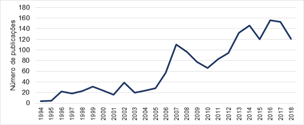 Ao analisar a evolução das publicações, é possível notar que na década de 2000 a um número maior de trabalhos desenvolvidos com esta temática e, especificamente, a partir de 2013, este número aumenta consideravelmente (Figura 1).