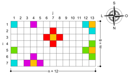 a célula em questão está vazia e ui;j = 0 se está ocupada. Da mesma maneira,