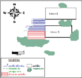 Figura 3 – Localização dos perfis de caminhamento elétrico no sítio arqueológico AP-MA-05