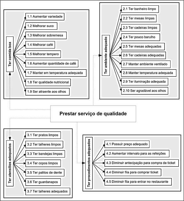 Em outro estudo sobre a avaliação da qualidade dos serviços de restaurantes, Gonçalves et al. (2011) identificaram os itens apresentados na Figura 1 como importantes para a avaliação dos serviços prestados pelos restaurantes.