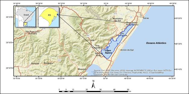 Figura. 1 Área de estudo. Lagoa Itapeva no litoral norte do Estado do Rio Grande do Sul.