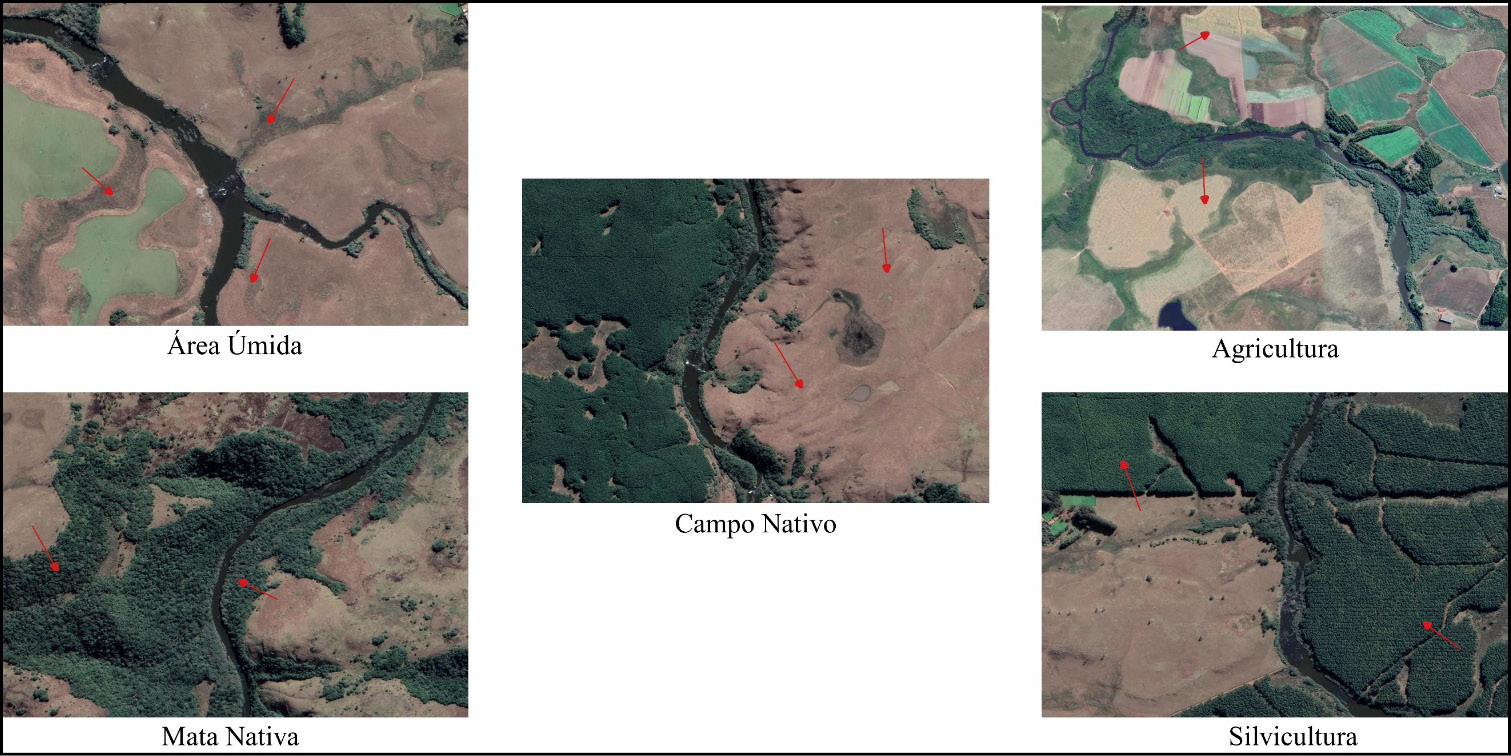 A espacialização e quantificação resultante foi fundamental para a garantia de condições de homogeneidade do uso e cobertura do solo ao longo dos cursos d’água (Figura 4) na análise geomorfométrica. Importante ressaltar que, as imagens e produtos derivados do geoprocessamento das mesmas, advém do ano de 2012, por conta dos dados primários utilizados no presente estudo ser do mesmo ano (PETRY et al., 2013). Assim, foi possível diagnosticar a condição de uso e cobertura do solo no período análogo à data de obtenção dos registros de ocorrência da O. jewelli na área, apresentados na Tabela 1.