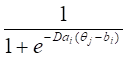 com i = 1, 2, ..., I, e j = 1, 2, ..., n, onde, I é a quantidade de itens no teste; n é número total de respondentes; ai é o parâmetro de discriminação (ou de inclinação) do item i; bi é o parâmetro de dificuldade (ou de posição) do item i, medido na mesma escala do traço latente e representa o nível do traço latente necessário para que a probabilidade de uma resposta correta ou concordo ou satisfazer as condições do item seja de 0,5; θj representa o traço latente do respondente j; Uij é uma variável dicotômica que assume os valores 1, quando o respondente j responde corretamente, concorda ou satisfaz as condições do item i, ou 0 caso contrário; P(Uij =1|θj ) é a probabilidade do respondente j, com seu traço latente θj, responder sim, estar satisfeito ou concordar como item i e é chamada de Função de Resposta do Item (FRI); e é a conhecida constante de Euler igual a 2,718281...; D é um fator de escala constante, igual a 1 se os parâmetros dos itens são estimados na métrica da Logística, ou igual a 1,7, se os parâmetros dos itens são estimados na métrica da ogiva Normal, que é a distribuição Normal acumulada, por aproximação (nesse estudo, os parâmetros serão analisados pela métrica da Logística, considerando, portanto, D = 1).