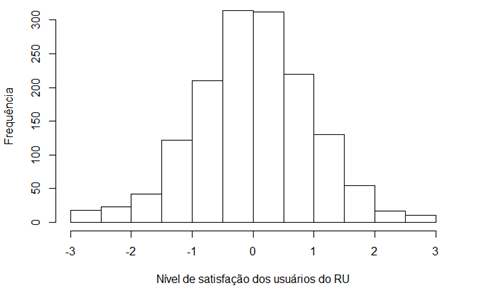 Neste trabalho foi desenvolvida uma escala interpretável para avaliar o nível de satisfação dos usuários do RU da UFSM, por meio do ML2 da Teoria da Resposta ao Item (TRI), onde foram posicionados os itens de satisfação e os participantes da pesquisa.