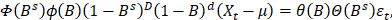 com sazonalidade s, denotado por SARIMA(p,d,q)×(P,D,Q)s,
