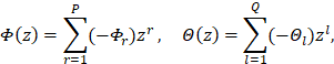 polinômios de ordem p, q, P e Q, respectivamente, definidos pelas equações (2)