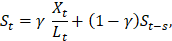e γ é o coeficiente de ponderação exponencial do fator sazonal