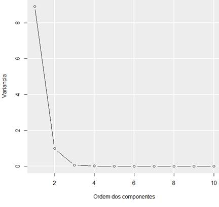 Neste artigo a análise de componentes principais foi feita via matriz de correlação. Maiores detalhes sobre o procedimento matemático para obtenção de componentes principais pode ser encontrado em Ferreira (2011).