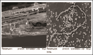 Analysis of biofilms obtained with different soybean germ concentrations by AFM images revealed that the roughness settings (RMS) were concentration-dependent (Figures 5). Scanning electron micrograph (SEM) of kefir biofilm (40 gl-1) with brown sugar (40 gl-1) and soy germ (20 gl-1), displaying hyphae with molecules linked to them.