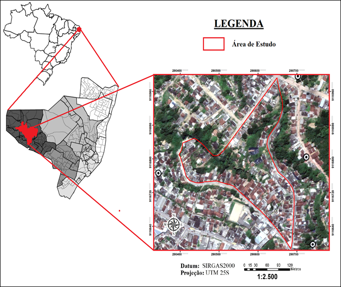 Figura 1 – Área de estudo no bairro de Águas Compridas, Olinda-PE