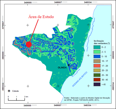 Figura 4 – Mapa de declividades médias do município de Olinda-PE