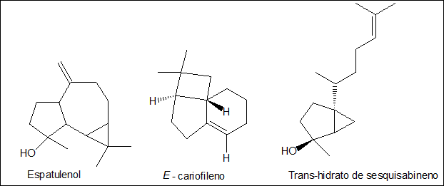 Palavras-chave: Espatulenol; Trans-hidrato de Sesquisabineno; (E) -cariofileno