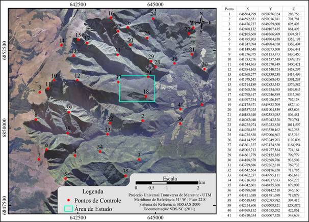 Figura 3 - Distribuição de Pontos de Controle em toda a área de estudo