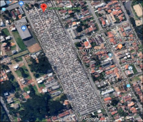 It is one of the largest municipal cemeteries, has an area of 132,299.75 m2; 8000 tombs and, approximately, 96,584 buried. The Santa Cândida Municipal Cemetery was founded in 1957 on the Colombo Road in Santa Cândida. In 1996, the mortuary chapels underwent reforms, to better serve the population. The temporary graves of the Cemetery of the Holy Candida are destined to the emergency burials of people, whose low-income families do not have resources and also of destitute ones. In these terms, if the burial occurred in Santa Cândida, the relatives have a term of 2 years to transfer to another cemetery (Figure 1). After this period and if relatives have not manifested, the remains are removed to the general ossuary (MUNICIPAL SECRETARY OF THE ENVIRONMENT, 2018).