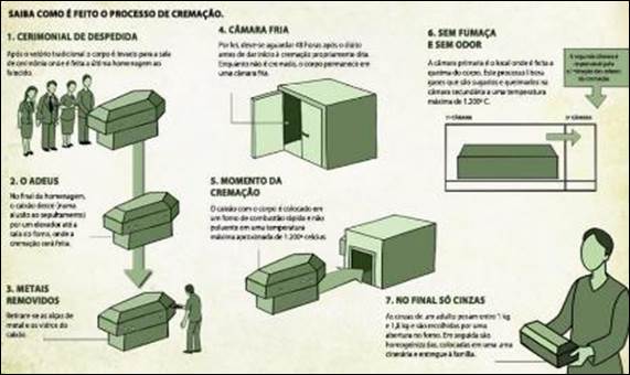 No cell in our body resists a temperature above 1000 degrees. This process can only be done after 24 hours after death and takes about 2 to 3 hours, depending on each body (GRUPO SÃO JUDAS TADEU, 2017).