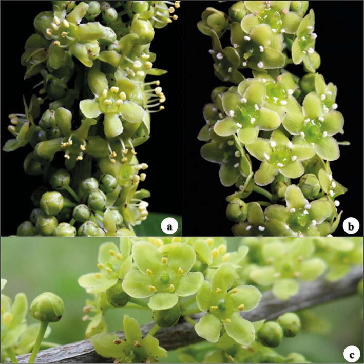 Detailed studies of floral biology and morphology and of the reproductive system, associated with the monitoring of flowering and fruiting phenology are extremely important for understanding the evolutionary process of the sexual system in M. ilicifolia. In that note, this paper aimed to evaluate floral morphology and biology, characterize the reproductive system and to characterize the reproductive system and to describe the reproductive phenology of M. ilicifolia at the Active Germplasm Bank of Espinheira-Santa of Embrapa Temperate Agriculture/Sul-Rio-Grandense Federal Institute of Education, Science and Technology (IFSul).