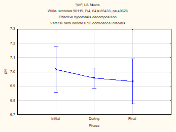 Figure 2. Graph representing the pH during the phases of the experiment.