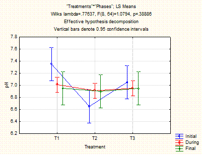 Figure 5. Graph representing the pH during the phases of the experiment by treatment.