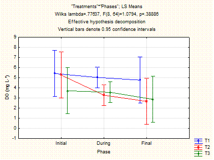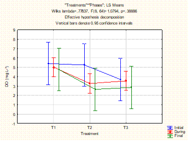 Figure 8. Graph representing the concentration of DO (mg/L) per treatment during the phases.