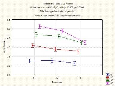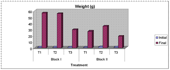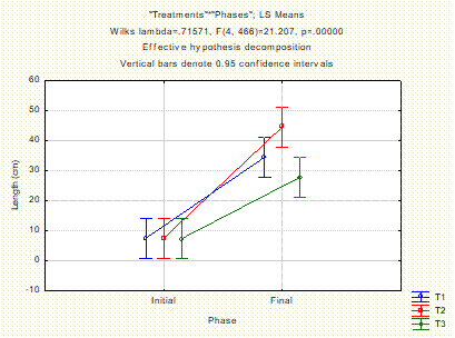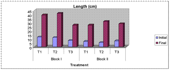 Table 3. Mean and standard deviation values for the Initial and Final Length (cm) of plants in the different treatments and between Blocks I and II.