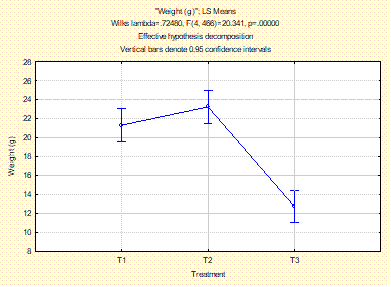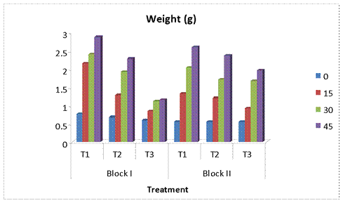 The analyzes of the biometric parameters of fish, measured during the biweekly samplings, demonstrate that for the parameter of weight (g), the T3 of the two blocks presented the smallest differences between the days sampled, as well as the smallest final results, with the T3 of Block I results very different from the others (Figure 19).