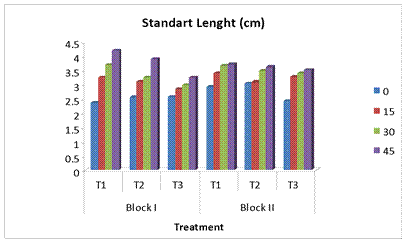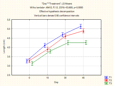 Figure 25. Graph representing the standard length (cm) of the fish of each treatment in biweekly biometrics.