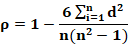 ρ = coeficiente de correlação de Spearman