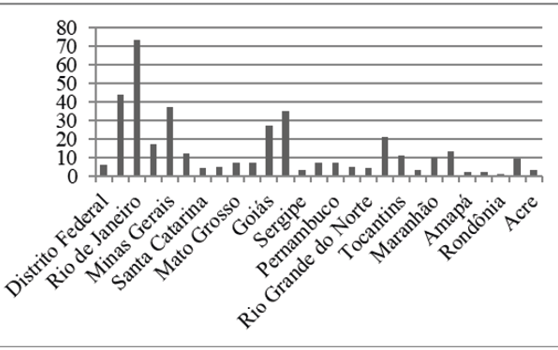 The analysis of EPA management category (federal, state, and municipal) (NRCU, 04/28/2019, parameterized report) returned a total of 355 EPA (TABLE 1)IV registered and distributed by the conditions of the federation (FIGURE 1)V. The state with the most protected sites in this management category is in Rio de Janeiro, whit 73 APAs (20.6%).