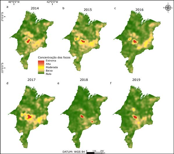 Figura 6 – Distribuição dos focos de calor no estado do Maranhão entre 2014 e 2019