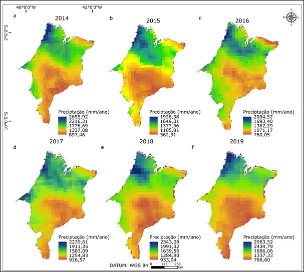 Figura 8 – Distribuição da precipitação pluviométrica no estado do Maranhão entre 2014 a 2019.