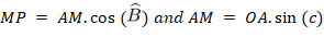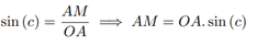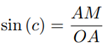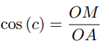 From the Euclidean right triangle OMA, since the angle at vertex O coincides with side c of the spherical triangle, it follows: