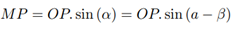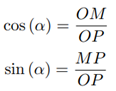 From the Euclidean right triangle OMP, denoting by α the angle at the vertex in O, it follows that