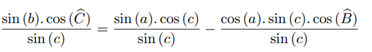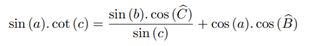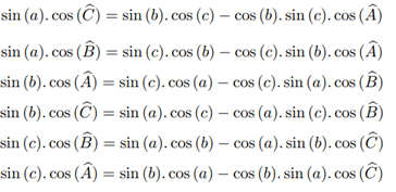Since all the formulas mentioned above are related to Euclidean triangles, we can make use of formulas known from traditional trigonometry. Some useful formulas for this article are in Appendix A. From these reasonable previous considerations, we can enunciate and prove important results regarding trigonometry in spherical triangles, starting by the Law of Cosines and the Law of Sines.
