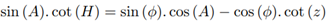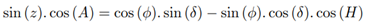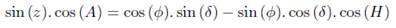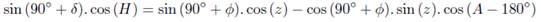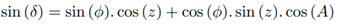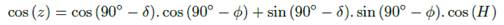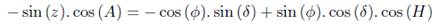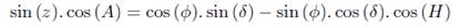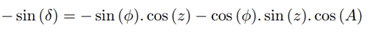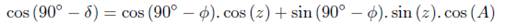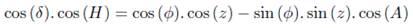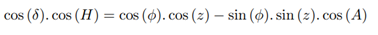 coordinates Zenith Distance, Hour Angle, Azimuth, Declination and Geographic