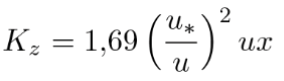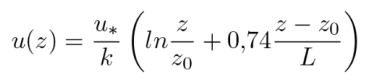 onde z0 representa a rugosidade do solo, L é o comprimento de Monin- Obukhov, u∗ é a velocidade de fricção e k representa a constante de Von Karman. Considerando as condições de vento fraco nas direções horizontais, foi usado um sistema de duas equações acopladas de Langevin para representar a flutuação no vento.