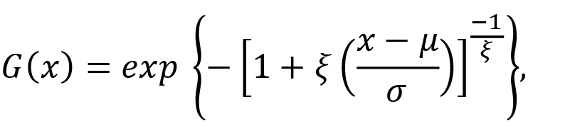 Considerando uma variável aleatória que representa a precipitação máxima anual, a distribuição GEV é definida pela função de distribuição cumulativa: