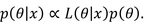 Na inferência Bayesiana, conforme Paulino et al. (2018) o conhecimento sobre o parâmetro θ é descrito pela distribuição a posteriori, 𝑝 (θ|𝑥), a qual é obtida a partir da informação a priori, 𝑝 (θ), juntamente da informação amostral, contida na função de verossimilhança 𝐿 (θ|𝑥), sendo apresentado da seguinte forma: