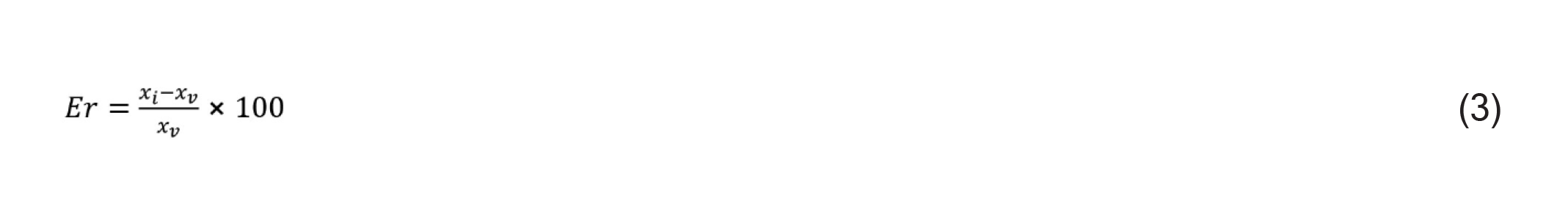 O erro relativo foi empregado para classificar a exatidão de cada grupo de acordo com a seguinte equação: