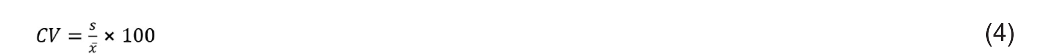 A análise da precisão dos grupos foi feita através do coeficiente de variação, segundo a equação 4:
