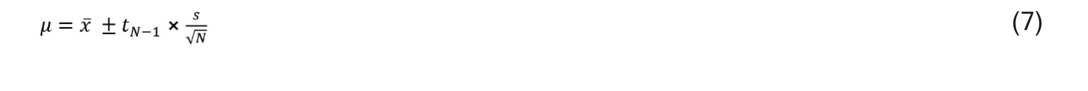 onde representa o valor médio da massa dos brigadeiros para cada grupo, t representa o valor tabelado de Student, ttab (p <0,05 e gl é dependente do número de brigadeiros confeccionados por cada grupo), s representa o desvio padrão, N representa o número de repetições de cada grupo e μ representa o valor médio do intervalo de confiança calculado. (Miller, 2018; Harris, 2013; Pfister, 2013).