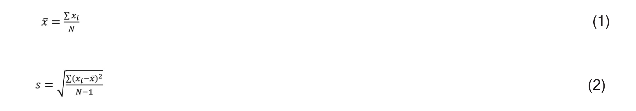 A média aritmética (equação 1) e o desvio padrão (equação 2) foram empregados na análise de tendência de flutuação em torno de um valor central e dispersão dos dados respectivamente, por meio das seguintes equações