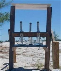 The determination of chloride content in the atmosphere was carried out according to the wet candle method as established by NBR 6211:2001. The Brazilian standard was based on the American ASTM D512 – 89 (ASTM, 2004). The equipment used consists of an Erlenmeyer flask containing 200 ml of glycerinated water, to which is attached a tube with a diameter of 25 mm and a height of 150 mm wrapped in gauze, and two test tubes with a diameter of 15 mm inside the flask, through which the gauze descends until it comes into contact with the bottom of the flask.