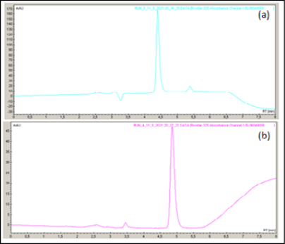 Figure 3 – Chromatograms of freeze-dried concentrate (a) and spray dryer concentrate (b)