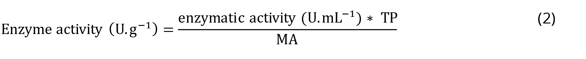 A unit of cellulosic activity (U.mL-1) is considered as the amount of enzyme capable of releasing 1μmol of glucose per mL per min of reaction (Ghose (1987). The conversion in U.mL-1 to U.g-1 was made by the following equation (Equation 2):