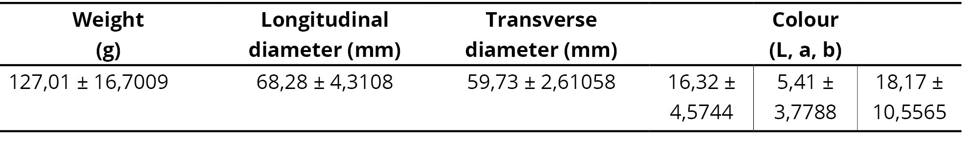 Table 1 – Means and standard deviations of the physical characteristics of the genipap fruits used