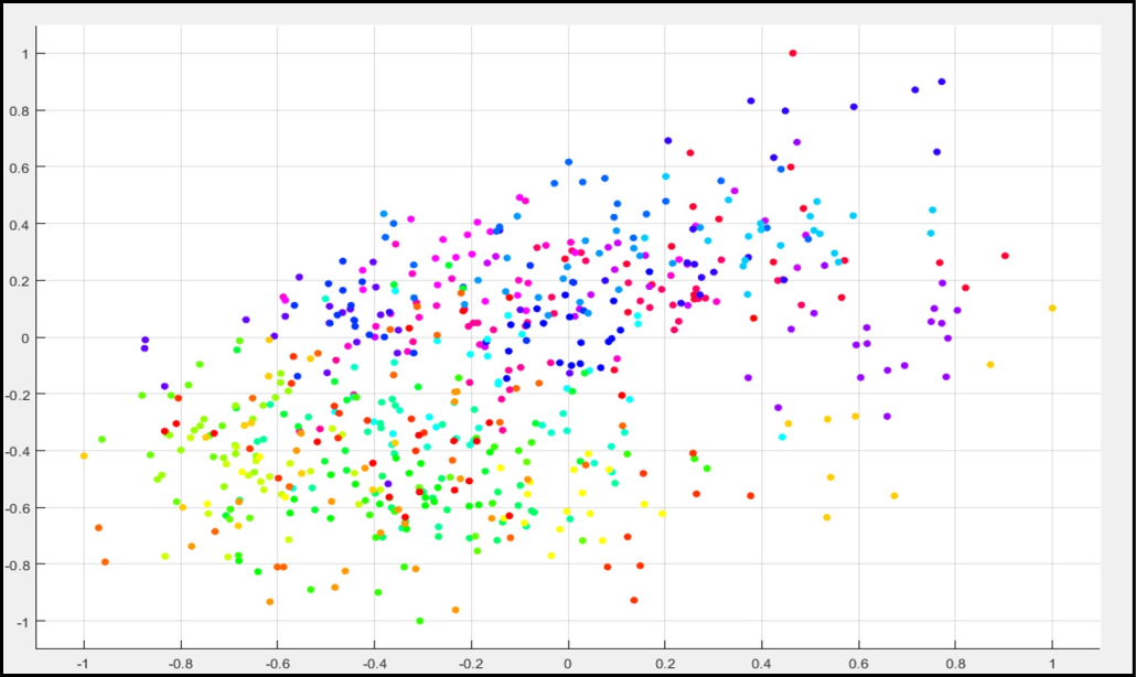 From these six slices, information on mean, kurtosis, and obliquity was extracted, generating a vector of 18 attributes (De Paula, 2012). The second color analysis was performed for the RBG and Lab models. In them, each image was subdivided into a 3x3 grid, and mean variance, and obliquity were extracted from each of the nine sub-images of this grid. For each color channel, two vectors of 81 attributes were generated.