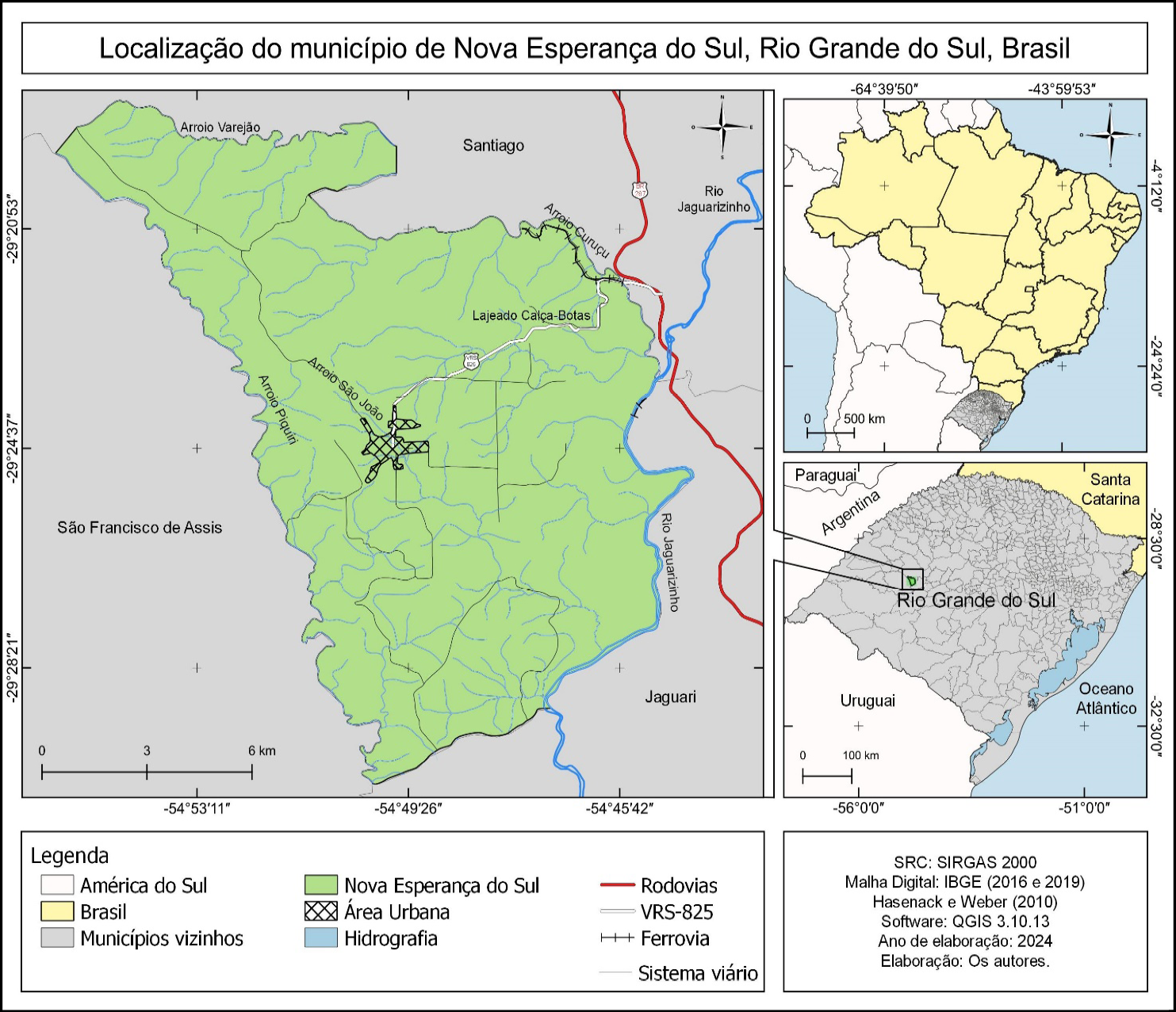 IBGE, Instituto Brasileiro de Geografia e Estatística. Mesorregião. Divisão Territorial Brasileira - DTB 2020. Disponível em: https://cidades.ibge.gov.br/brasil/rs/nova-esperanca-do-sul/panorama. Acesso em: 30 maio 2022.